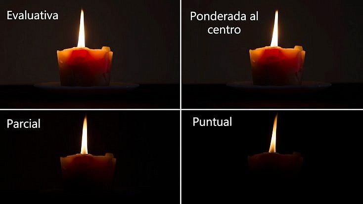 | MEDICIÓN PONDERADA AL CENTRO | Mide la luz priorizando la parte central de la escena (75% de la imagen), deja a fuera las esquinas. Algunas cámaras te permiten definir el tamaño del diámetro central. |