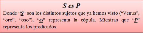 | Gracias a la cópula, el juicio puede hacer afirmaciones o negaciones: | Si quisiéramos representarlos en una formula abstracta, eliminando todo contenido: |