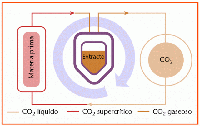 | Esta técnica tiene gran aplicación en la extracción de aromas y sabores naturales, extractos de especias y aceites de semillas | Extracción con fluidos supercríticos |