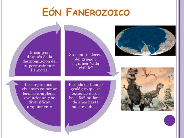 | Eón fanerozoico Es muy corto pero el más estudiado, porque allí ocurrieron eventos evolutivos muy importantes Comprende 96 Ma | |