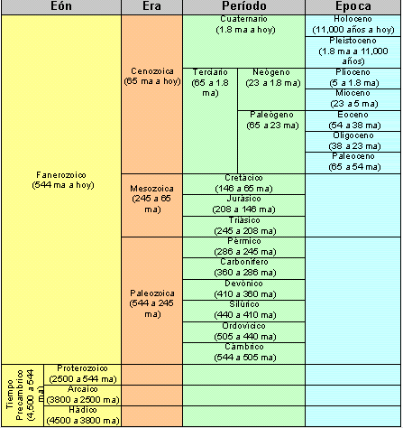 | La escala del tiempo geológico | Es un sistema internacional que muestra los eventos más importantes de la vida en la tierra |