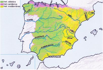 | Las vertientes hidrográficas. | Las vertientes hidrográficas de España son: la mediterránea, cantábrica y atlántica. |