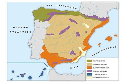 El clima de España | Los diferentes climas que nos podemos encontrar en España son: clima oceánico, continental, mediterráneo, de montaña y subtropical. |