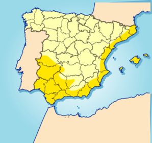 Clima mediterráneo | El clima mediterráneo predomina en toda la zona mediterránea, la zona atlántica andaluza, las Islas Baleares, Ceuta y Melilla. Presenta unas temperaturas elevadas y unas precipitaciones escasas e irregulares. |