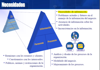 ¿Dónde encontrar necesidades? Necesidades Comunicadas ☻Por los participantes en los procesos del negocio. ☻Directivos de la organización. ☻Dueños de la organización. ☻Otros interesados del proyecto. | |