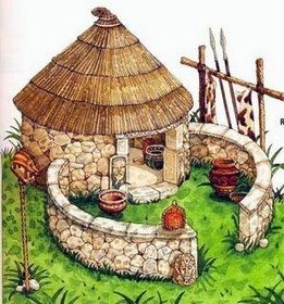 | Vivian en casas echas de paja y piedra, por dentro había un palo que sujetaba el techo. | |