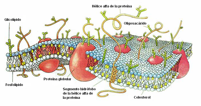 | La membrana plasmática, membrana celular, membrana citoplasmática o plasmalema, es una capa o bicapa de fosfolípidos y otras sustancias que delimita toda la célula, dividiendo el medio extracelular del intracelular. | |