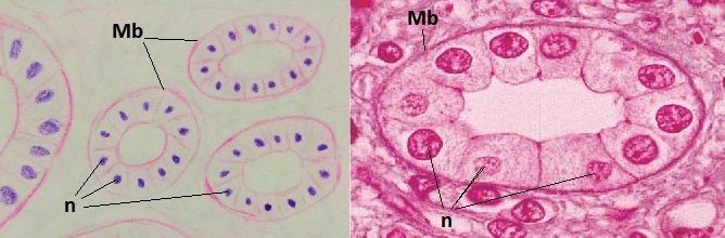 | Función y localización del epitelio cubico simple | Reviste la superficie ovárica, tapiza túbulos renales y conductos pequeños de glándulas, delimita la capsula del cristalino, retina, secreta glándulas (tiroides, páncreas) Función: secreción y absorción |