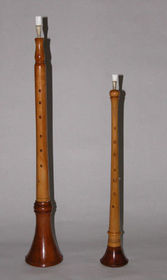 | Instrument utilitzat des del segle XII, però molt menys popular que la flauta de bec a l'Edat Mitjana i al Renaixement a conseqüència de la seva major dificultat d'execució. El seu tub és cilíndric, de fusta i té sis forats per tocar. | FLAUTA BAIXA |