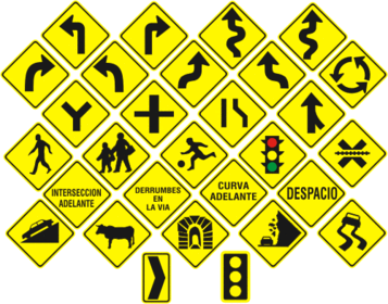 | Señales de Prevención | Anuncian si hay problemas en la vía, tales como curvas peligrosas, derrumbes, animales, trabajos... |