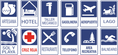 | Señales de Información | Anuncian distancias e indican la cercanía de servicios tales como gasolineras, restaurantes y otros |