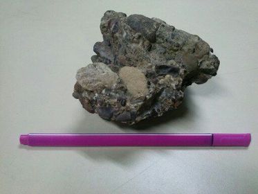 | MUESTRA: IGR - 100. | CARACTERÍSTICAS MACROSCOPICAS: superficie irregular, granos de diferentes composiciones, poca matriz (clasto-soportado). ASPECTO GENERAL: mas o menos pesada, diferentes colores, bioclasto (bivalvo o braquiopodo). COLOR: moderate olive brown 5Y 4/4. COMPONENTES MINERALES: cuarzo, minerales de hierro. TAMA;O DE GRANO: gravas de diferentes tama;os, matriz arenosa. FORMA DE LOS GRANOS: redondeados, subredondeados y subangulosos. ESTRUCTURAS SEDIMENTARIAS: no presenta. TIPO DE ROCA: polimictica de cuarzo y minerales de hierro. |