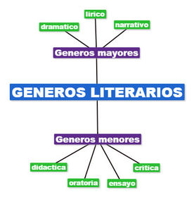 | Las obras de literatura se clasifican en géneros literarios que son: géneros mayores (narrativo,lírico,dramático) y géneros menores (oratoria,critica,ensayo,didáctica). | |
