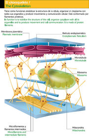 Citoesqueleto | Esta formado por una red de fibras de proteína, que dan la apariencia de una malla en el interior de las celulas |