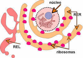 retículo endoplasmático | reticulo endoplasmatico: es un conjunto de tubos y canales membranosos que se encuentran interconectados. existen dos tipos: rugoso que contiene ribosomas . y reticulo endoplasmatico liso: en donde se fabrican lipidos y es por donde el cuerpo se desintoxica. |
