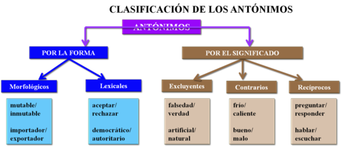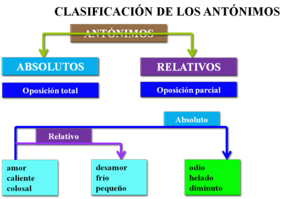 | Los antónimos son grupos de palabras que expresan ideas contrarias entre si, son de nombre o significado contrario. | |
