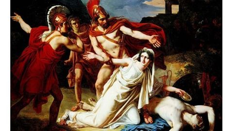 Tragedia | Obra dramática de asunto serio en que intervienen personajes nobles o ilustres y en la que el protagonista se ve conducido, por una pasión o por la fatalidad, a un desenlace funesto; en la Grecia antigua, tenía como objeto un efecto purificador en el espectador. |