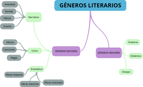 | GÉNEROS MAYORES | NARRATIVO: Dentro de este subgénero se encuentra la anécdota,novela,fábula,biografía,cuento. |