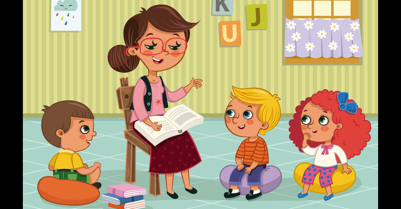 Die Lehrerin erklärt IHREN SCHÜLERN das Thema.