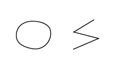Herramientas de dibujo (I) El trazado El dibujo vectorial se basa en trazados. Por tanto, al dibujar con las herramientas de Illustrator estamos creando trazados. Vamos a ver dos ejemplos de trazados muy simples. | Hemos dibujado el círculo con la herramienta lápiz a mano alzada, y el zig-zag con la herramienta pluma, haciendo un clic en cada vértice. El círculo forma un trazado cerrado, ya que sus extremos están unidos entre sí, mientras que el zig-zag es un trazado abierto. |