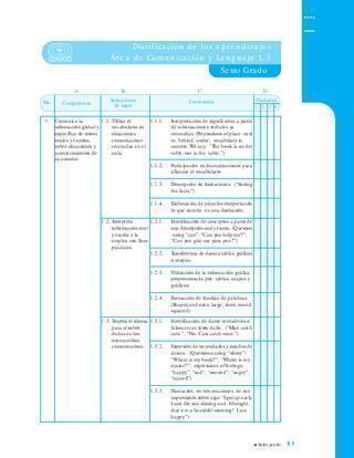 | Desarrollo de las áreas Dosificación de los aprendizajes | Área de Comunicación y Lenguaje L 1, Área de Comunicación y Lenguaje L 2, Área de Comunicación y Lenguaje L 3 Área de Matemáticas Área de Medio Social y Natural Área de Expresión Artística Área de Educación Física Área de Formación Ciudadana |