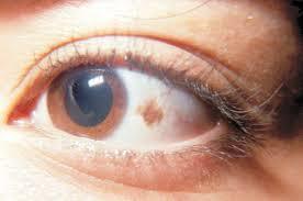 | Nevo conjuntival | Mancha café en la esclerótica |