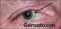 | Gerontoxon / anillo senil / arco senil | En pacientes de edad avanzada. Es un deposito de lípidos en la periferia del tejido corneal |