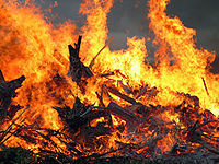 | Combustión | Reacción química que se produce entre el oxígeno y un material oxidable, que va acompañada de desprendimiento de energía y habitualmente se manifiesta por incandescencia o llama. |