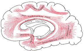 | Fibras de proyección | Fibras que transmiten impulsos desde el cerebro y otras zonas del encéfalo hacia la médula espinal y viceversa |