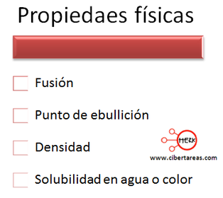 | Propiedades físicas: Estudian las relaciones de los cuerpos sin cambios en ellos. | |