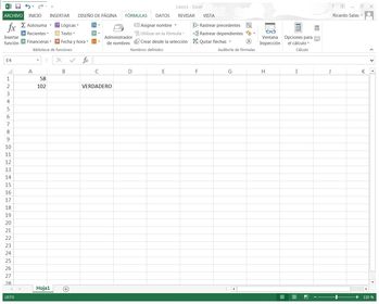 | Lógicas: "O" Devuelve VERDADERO si cualquier argumento es VERDADERO. Se colocan valores en varias casillas y si los argumentos son verdaderos la función "O" colocará VERDADERO en la casilla seleccionada para la fórmula. | |