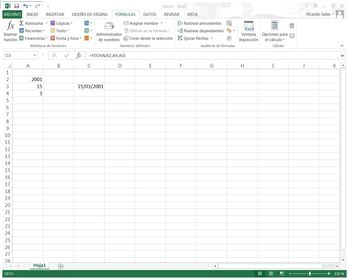 | Fecha y hora: "FECHA" Devuelve el número de serie correspondiente a una fecha determinada. Con la función "FECHA" se pueden unir distintos números para crear una fecha determinada. | |