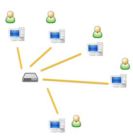 | Grupo de trabajo Un grupo de trabajo en windows es un grupo de ordenadores en red que comparten recursos (ficheros e impresoras). En el modelo de grupo de trabajo no existe un servidor central y ordenadores clientes, sino que son redes de igual a igual, donde cualquier ordenador puede jugar ambos roles. En los sistemas anteriores a XP la autentificacion se producia a nivel de recursos: las carpetas compartidas podian ser protegidas por contraseñas. Para acceder al recurso bastaba estar en la red, conocer la ubicacion del recurso y su contraseña. | |