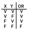 | tabla de verdad de la Adición, unión o función O (OR) | |