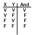 | tabla de verdad de PRODUCTO, INTERSECCIÓN o función Y (AND) |
