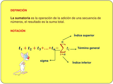 | Sumatorias | En Estadística cuando se obtienen varios datos que lleven secuencia y además se decida sumarlos se le llama SUMATORIA |