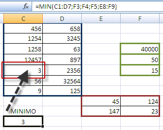 MIN (función MIN) Este artículo describe la sintaxis de la fórmula y el uso de la función (función: fórmula ya escrita que toma un valor o valores, realiza una operación y devuelve un valor o valores. Utilice funciones para simplificar y acortar fórmulas en una hoja de cálculo, especialmente aquellas que llevan a cabo cálculos prolongados o complejos.) MIN en Microsoft Excel. Descripción Devuelve el valor mínimo de un conjunto de valores. Sintaxis MIN(número1, [número2], ...) La sintaxis de la función MIN tiene los siguientes argumentos (argumento: valor que proporciona información a una acción, un evento, un método, una propiedad, una función o un procedimiento.): Número1, número2... Número1 es opcional, los números siguientes son opcionales. De 1 a 255 números de los que se desea encontrar el valor mínimo. | |