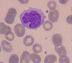 Monocito | Presntan morfología variada, debido a su gran motilidad y adherencia. El núcleo generalmente es curvo y con cromatina reticular con pequeños grumos. El citoplasma abundante presenta granulos diminutos dispuestos en remolino (Ruiz, 2006). |