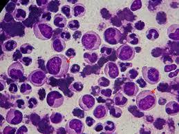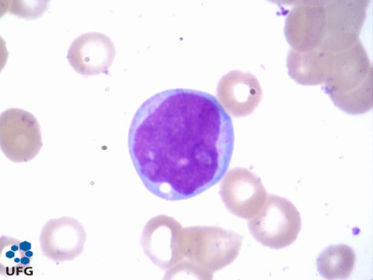 Prolinfocito | Presenta cromatina levemente más condensada, disminución de la prominencia nucleolar y cambio en la membrana nuclear (Ruiz, 2006). Sigure presentando basofília. |