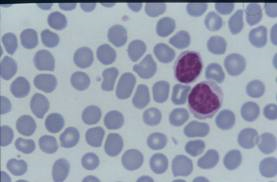 Linfocito | Célula pequeña, mediana o grande , de alrededor de 9 a 15 um de diámetro, con citoplasma escaso y unos pocos gránulos azurófilos. El núcleo es redondo a oval y su patrón de cromatina es en bloque. Presenta basofília (Rodak, 2005). |