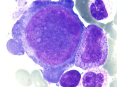 Megacarioblasto | Célula grande que posee un diámetro de 10-15 um de diámetro, con una porción elevada entre núcleo y citoplasma. Poseen un sólo núcleo con dos o seis nucléolos. El citoplasma es escaso, basófilo y no contiene gránulos (Rodak, 2005). |