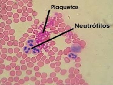Plaquetas | Segmentos citoplasmáticos del megacariocito maduro, presentan formas irregulares. Estos fragmentos son de carácter acidófilo (Ruiz, 2006). |