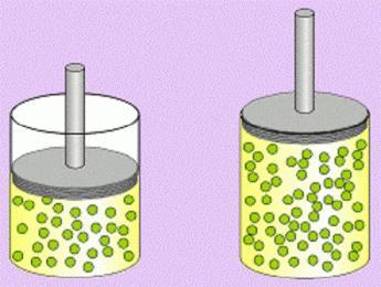 | Compresión de un gas | Se pueden comprimir, haciendo que ocupen un menor volumen al aumentar la presión. |