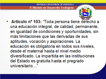 | articulo 103 | Son mecanismos de participación del pueblo en ejercicio de su soberanía: el voto, el plebiscito, el referendo, la consulta popular, el cabildo abierto, la iniciativa legislativa y la revocatoria del mandato. La ley los reglamentará. El Estado contribuirá a la organización, promoción y capacitación de las asociaciones profesionales, cívicas, sindicales, comunitarias, juveniles, benéficas o de utilidad común no gubernamentales, sin detrimento de su autonomía con el objeto de que constituyan mecanismos democráticos de representación en las diferentes instancias de participación, concentración, control y vigilancia de la gestión pública que se establezcan. |