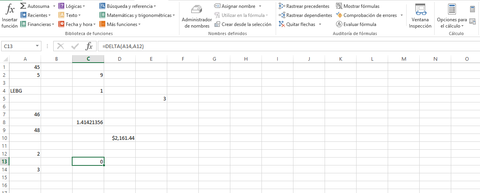 | Ingeniería:"DELTA" Comprueba si dos valores son iguales. Devuelve 1 si el argumento número1 = número2; de lo contrario devuelve 0. se usa en este caso, 2 y 3. |