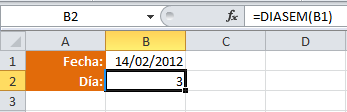 | Función Díasem La función DIASEM en Excel nos devuelve el número que identifica a un día de la semana, es decir, nos regresa un número entre 1 y 7 el cual indicará qué día de la semana corresponde a una fecha determinada. Argumentos 1.Núm_de_serie (obligatorio): Es la fecha de la cual necesitamos conocer el día de la semana. 2.Tipo (opcional): Nos permite configurar el día asignado como primer día de la semana. | |