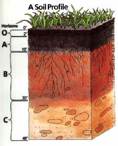 | Horizonte A: Es la capa donde se encuentra una gran cantidad de humus y materia orgánica, también se desarrollan los gusanos, raíces, etc. |