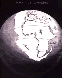 | Cuál fue probablemente la primera prueba que condujo a algunos a sospechar que los continentes habían estado conectados? | Evidencias geográficas del parecido entre América del sur y África, propuesto por Francis Bacon en 1620 |