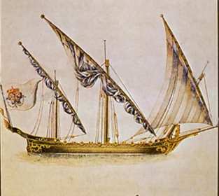 | carabela | Carabela Barco de proa redondeada y popa plana, sintetiza las corrientes nórdicas y mediterráneas: 3 mástiles, timón de popa, codaste, velas cuadradas móviles, triangular atrás. |