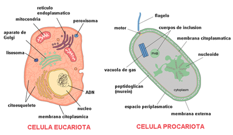 | La principal característica de las células eucariotas vegetales y animales es que ambas poseen un núcleo bien organizado formado por la envoltura nuclear o Carioteca que aisla y separa el ADN del resto de la célula, proviene de eu= verdadero, Karion= núcleo y la de poseer los 3 elementos que conforman la Maquinaria Biosintética ( ADN, ARN, Ribosomas) mediante la cuál pueden sintetizar sus propias proteínas celulares. Las células eucariotas animales y vegetales poseen las siguientes características en común: - Poseen organelos subcelulares membranosos y no membranosos cada uno con una función específica. - Poseen un Sistemas de Endomembrana so Sistema Vacuolar Citoplasmático formado por el retículo endoplasmático rugoso, liso, el aparato de golgi y la carioteca. - Se dividen por Mitosis o Cariocinesis solo las células somáticas o formadoras del cuerpo y por Meiosis las células germinales, suxuales o gametas ( espermatozoides y óvulo en animales, anterozoides y oósfera en vegetales superiores). Las células eucariotas vegetales se caracterizan por lo siguiente: - Poseen Pared celular de naturaleza celulósica quien le da una forma geométrica a las células vegetales y participa en el sostén mecánico como asi también protege a la membrana plasmática y a todo el contenido interno de la célula. - Poseen organelos propios como los PLastidios de color verde o Cloroplastos importantes para el proceso de la Fotosíntesis encargados de transformar sustancias inorgánicas sencillas y simples en moléculas orgánicas de mayor complejidad, otros Plastidios Coloreados ( Cromoplastos) encargados de dar los diversos colores vistosos en los pétalos de las flores. - Poseen Vacuolas muy desarrolladas para el almacenamiento del agua y sustancias solubles en ella ( pigmentos hidrosolubles) las vacuolas ppueden ser numerosas o bien haber una sola en cuyo caso ocupa el 90% de la cavidad o lúmen celular. - Son Productoras porque poseen la facultad de sintetizar moléculas orgánicas por Fotosíntesis y ser Autosuficientes. - Poseen todos los organels membranosos y no membranosos ( lisosomas, peroxisomas, mitocondrias, etc) pero carecen por completo del Centro celular o Centríolos. Las células eucariotas animales presentan las siguientes características: - Poseen Sistemas de Endomembranas internos. - Se dividen por Mitosis o Cariocinesis( células somáticas) y por Meiosis ( células germinales). - Poseen Lisosomas muy funcionales para la Digestión intracelular ( Endocitosis) o Extracelular ( Exocitosis). - Poseen como organelos propios el Áster o Centro celular formado por un par de Centríolos encargados de formar las Fibras del Huso Mitótico, Acrosómico o Acromático durante la división celular ( mitosis- meiosis). - Son células Consumidoras o Dependientes pues al carecer de Plastidios verdes necesitan incorporar alimentos de otros seres vivos para obtener energía química de ellos. Las células Procariotas ( Pro= falso, karion= núcleo ) son aquellas células que no presentan envoltura nuclear o Carioteca por ende el material genético del organismo o ADN se encuentra Compactado, plegado y unido en uno de sus extremos al lado interno de la membrana plasmática dentro de un esbozo de Núcleo primitivo o rudimentario llamado Nucleoide. - Carecen de Sistemas de Endomembranas. - Poseen una sola molécula de ADN de tipo No histónico, sin embargo algunas especies de bacterias presentan una pequeña molécula circular de ADN extracromosómico llamado Plásmido destinado a la Conjugación bacteriana ( Plásmido F ) o bien a la resistencia a los antibióticos ( Plásmido R ). - Poseen Pared celular de naturaleza no celulósica contituída por Péptidoglucanos y ácidos orgánicos. - Otra de las características prinicpales de las células procariotas es que asociada a la membrana plasmática se encuentra la cadena oxidativa, respiratoria o de transporte de electrones destinada a la Oxidación biológica de los alimentos incorporados y a la respiración celular ya que en algunas regiones se invagina formando el Mesosoma, en células eucariotas esta cadena oxidativa está presente en las Crestas mitocondriales. - Se dividen Asexualmente por Amitosis o Fisión Binaria. - Las funciones de Endocitosis y Exocitosis relacionadas con la Membrana plasmática están ausentes. - Por su sistema de nutrición son Heterótrofas la mayoría de las especies de bacterias, Autótrofas las bacterias coloreadas y Quimiosintéticas aquellas especies de bacterias que obtiene la energía química mediante la oxidación de sustratos inorgánicos como agua, hidróxidos, ácidos, sales minerales ejemplos Beggiatoa ( bacterias del azufre, Nitrosomonas y Nitrobácter bacterias fijadoras del Nitrógeno atmosférico, etc ). - Poseen Flagelos formados por una fibrilla únca de Tubulina destinados a la Locomoción o traslado dentro de su Hábitat |
